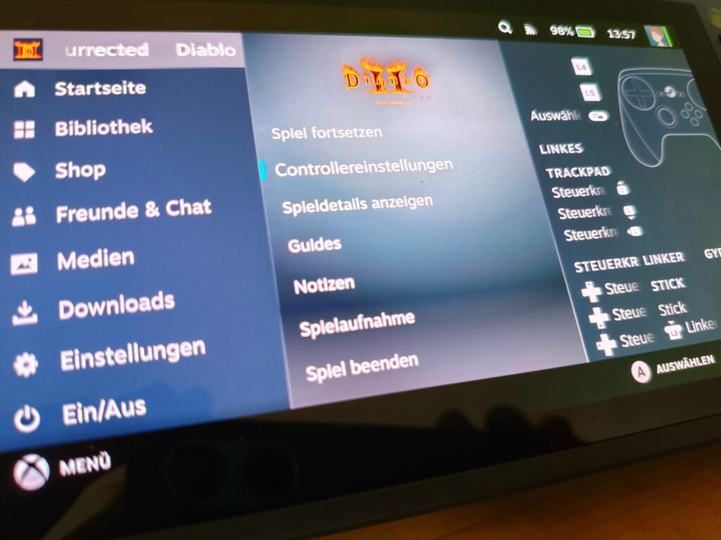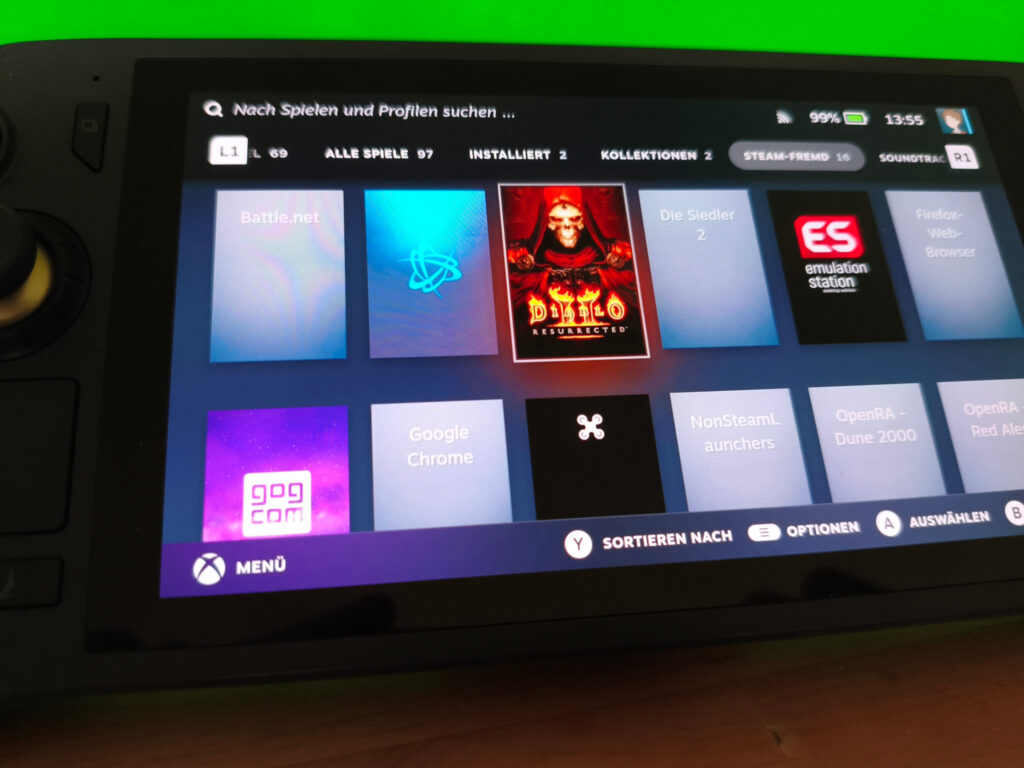 Interessant war für mich auch herauszufinden, dass es nicht unmöglich ist, andere Spiele aus anderen Launchern anderer Anbieter zu nutzen. Mit mehr oder weniger Aufwand sind Launcher von Battle.net oder Ubisoft zum Laufen zu bekommen. Damit können auch neuere History-Versionen von Die Siedler 2 oder 3 auf dem Handheld gespielt werden. Das Zotac Zone hat ja durchaus Mausfelder, ähnlich dem einem vom Steam Deck. Die Umsetzung oder die Unterstützung von SteamOS ist nur noch nicht wirklich gut und eine echte Maus doch empfehlenswert, obwohl auch mit einem Controller-Profil die Siedler 3 spielbar wären. Für mich wurde aber das Zotac Zone auch zur regelrechten Diablo 2 Resurrected Spielkonsole. Besonders zu den klassisch geschlossenen Konsolensystemen können hier zusätzlich Modifikatoren, sprich Mods für ein anderes Spielerlebnis sorgen. Die Controllersteuerung ist bei diesem Spiel ja zum Glück von Haus aus mit dabei. Es zeigen sich daher Anwendungsfälle, die auf dem PC teilweise trivial sind, aber auf vielen Konsolen so gar nicht möglich waren, jedoch hier eine Kombination aus beiden Welten erleben.